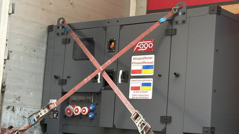 Від Fundacja Polskie Centrum Pomocy Międzynarodowej передано: генератор на 150 кВт, два генератори по 100 кВт, генератор на 16 кВт, генератор на 5,5 кВт, а також дизельний нагрівач повітря потужністю 50 кВт.