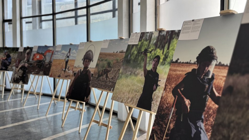 На станції «Золоті ворота» відкрили фотовиставку «Жінки у розмінуванні». КМДА