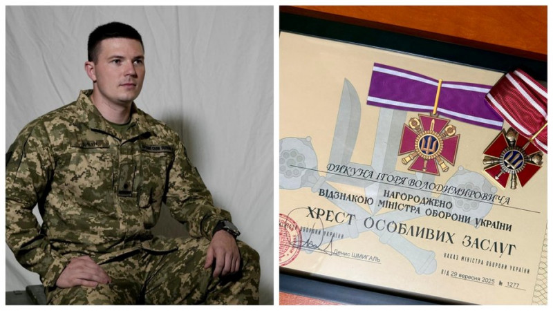 "Герой України Ігор Дикун удостоєний Хреста особливих заслуг від Міністерство оборони України", — написали на сторінці ТЦК у соцмережі.