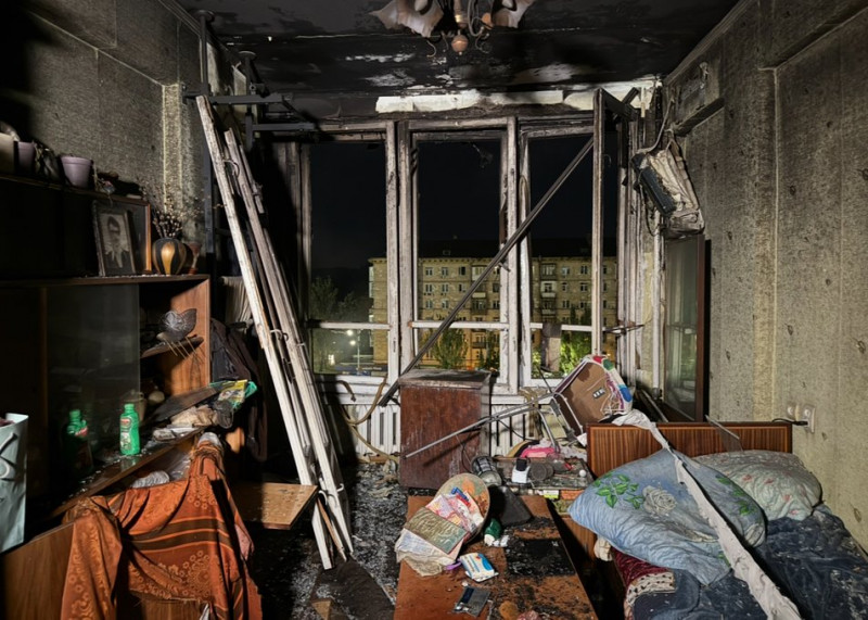 "Біля другої ночі був прильот. Можливо, уламки, я некомпетентна в цьому питанні. Повилітали всі шибки, горіли три поверхи у другому під'їзді нашого будинку. Була велика паніка, усі вибігали. Стрес для цілого будинку", — розповіла жінка.