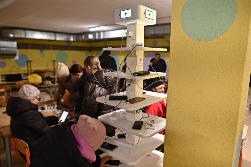 Люди у пункті незламності заряджають телефони. Микола Калашник/Telegram