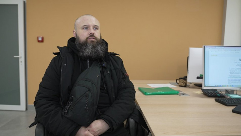 Ветеран Олексій Проценко у Центр підтримки ветеранів і родин героїв, Тернопіль, 14 січня 2026 року. Суспільне Тернопіль