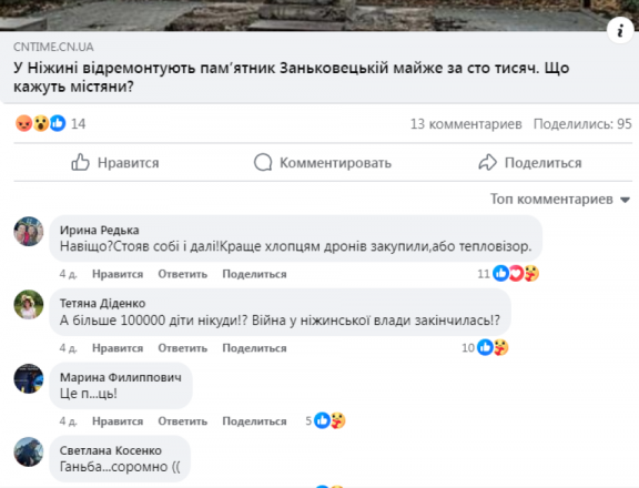 Теги: Хто прийняв рішення, ремонтувати у Ніжині, пам'ятник Марії Заньковецькій