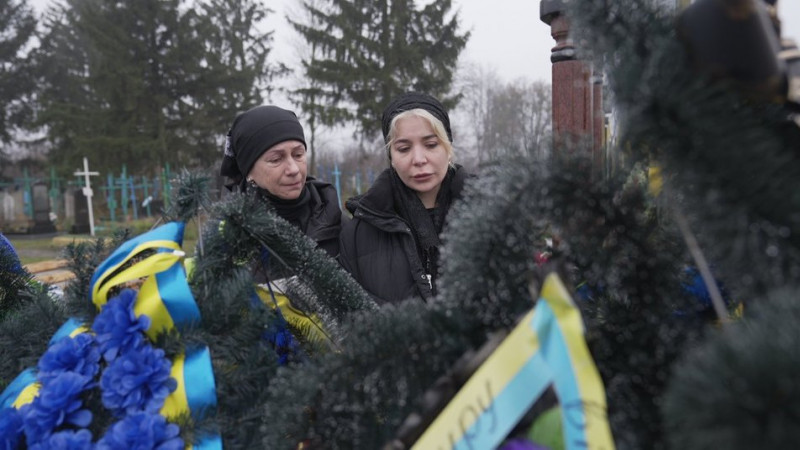 Наталя Векліч та Кеті Лешкашелі біля могили Володимир Векліча в Журавному на Вінниччині. Суспільне Вінниця/Андрій Нєстєров