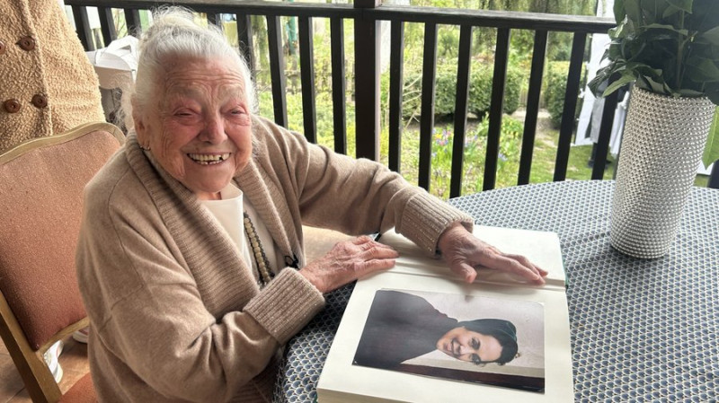 Зоя Іщук, якій виповнилося 100 років, зі своїм фото в молодості. Суспільне Новини/Анна Москаль