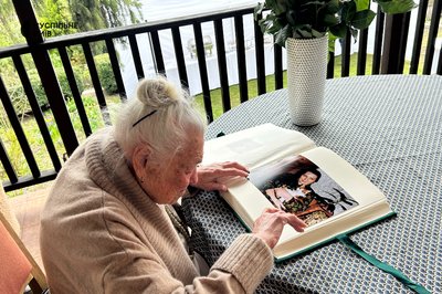 Зоя Іщук розглядає світлини у фотоальбомі. Київська область, 18 квітня 2026 року . Суспільне Новини/Анна Москаль