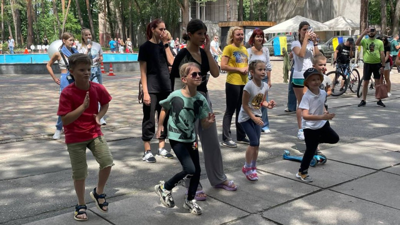 Суспільне Черкаси/ Наталі Соколан, діти у парку проводять спортивне тренування