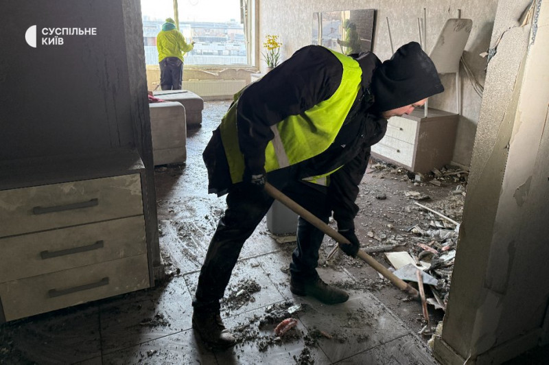 Іноземці допомагають прибирати: як виглядає ЖК «Централ Парк» після атаки на Київ