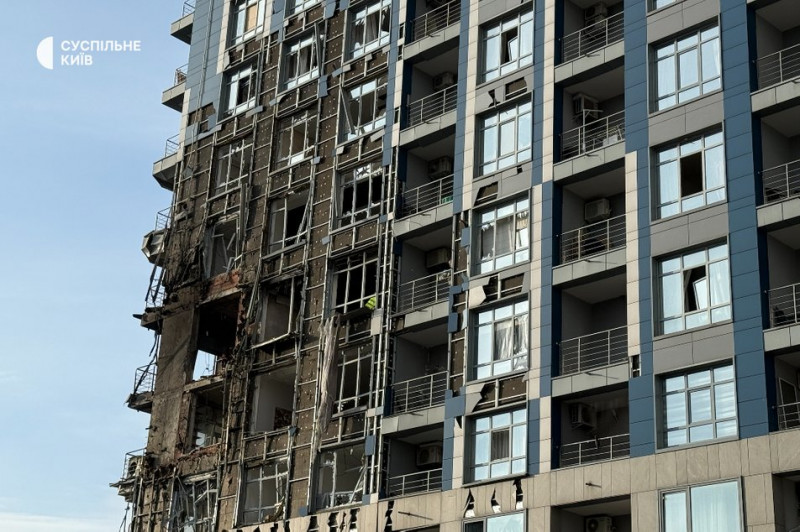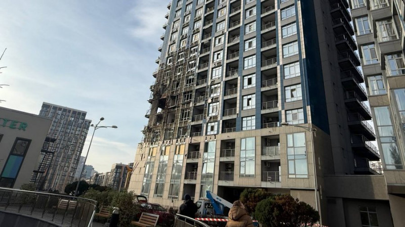 Пошкоджений ЖК «Централ Парк» через російський обстріл Києва, 25 листопада 2025 р. Cуспільне/Анна Железняк