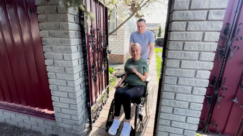 Чоловік Анни пересаджує її з колісного крісла у машину. Суспільне Чернігів