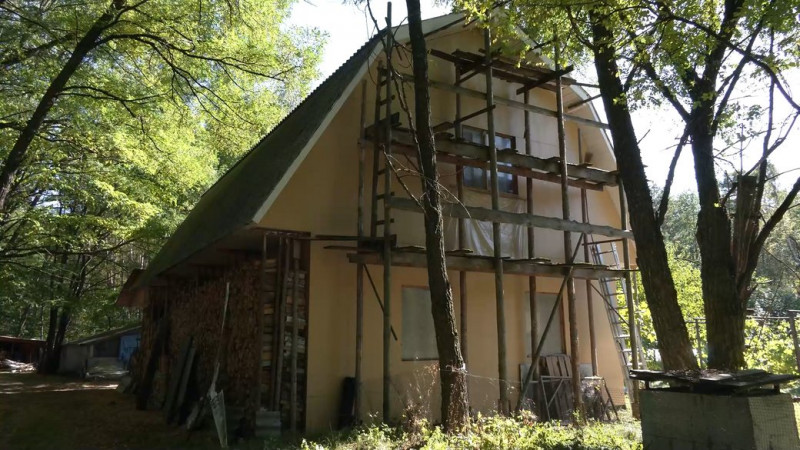 Будинок Василь та Валентина ще не добудували. У ньому використані енергоощадливі технології. Стіни з житньої соломи, яку не їдять миші, розповідає господар. Зсередини – товстий шар глини. Спеціальна піч, яка гріє не з рівня вогню, як у сільських хатах, а від підлоги.
