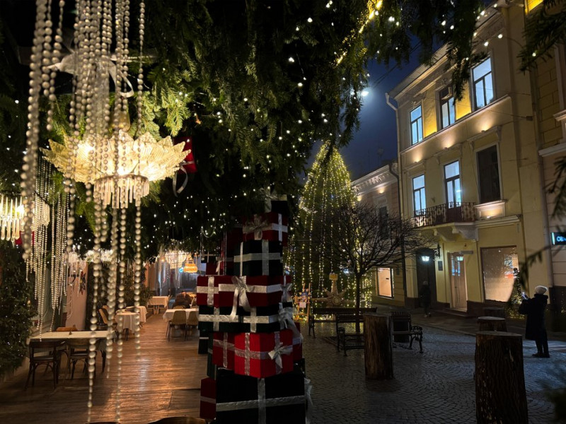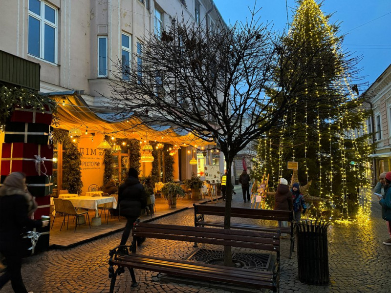 Новорічний декор ресторану на вулиці Ольги Кобилянської. Суспільне Чернівці