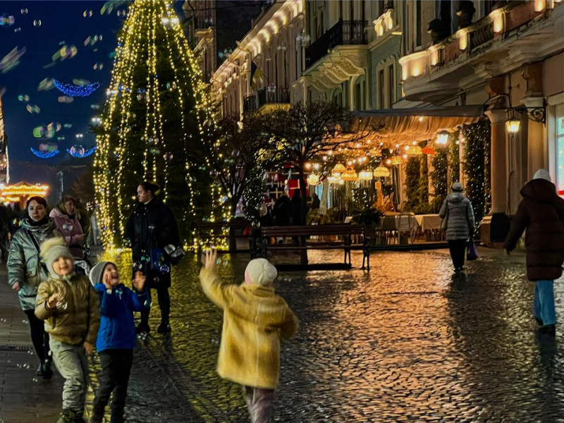 Діти граються біля ялинки на вулиці Ольги Кобилянської. Суспільне Чернівці