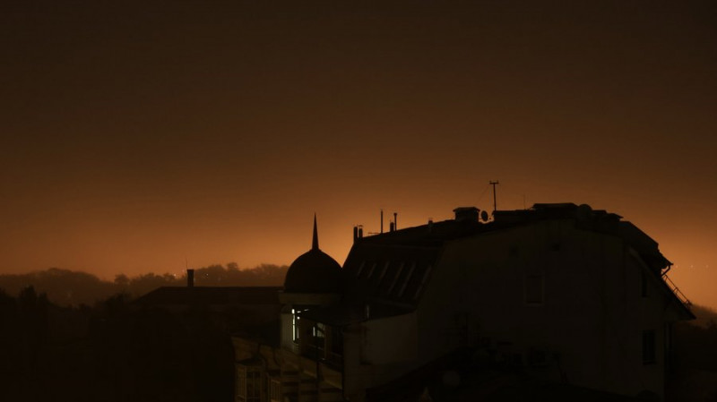 Заграва над Києвом після удару російського дрона, 22 жовтня 2025 року. Суспільне Новини/Іван Антипенко