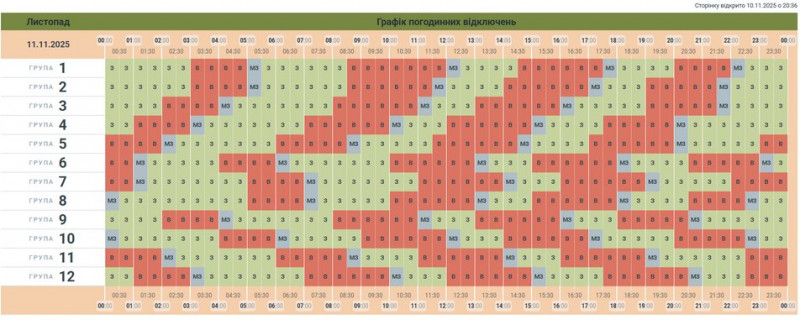 Режим роботи графіків може змінюватися протягом доби залежно від ситуації в енергосистемі України, повідомляли раніше Суспільному в обленерго.