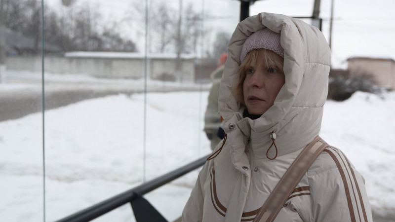 Люди чекають на транспорт на зупинці «Діагностичний центр» у Чернігові. Суспільне Чернігів