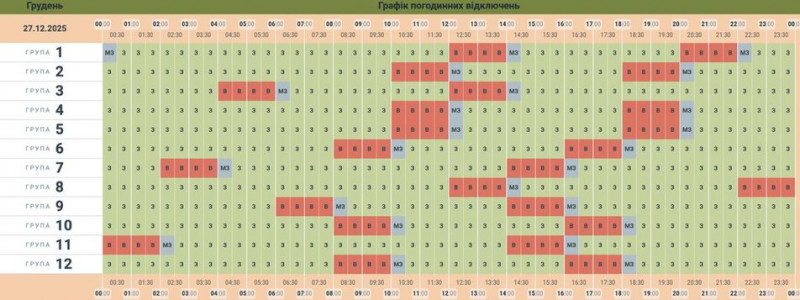 Графік відключень на суботу, 27 грудня. Чернівціобленерго
