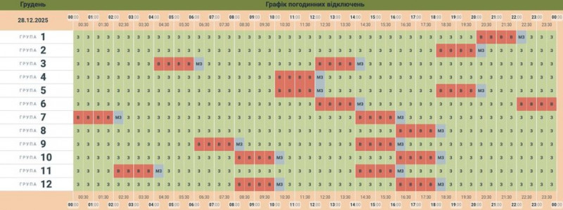 Графік відключень на неділю, 28 грудня. Чернівціобленерго