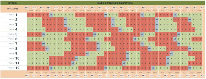 Режим роботи графіків може змінюватися протягом доби залежно від ситуації в енергосистемі України, повідомляли раніше Суспільному в обленерго.