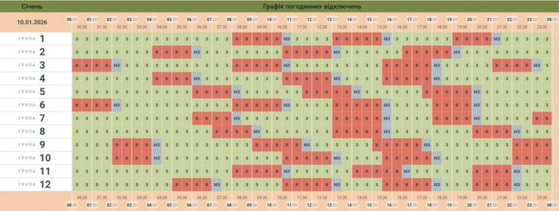 Графік погодинних відключень електрики на 10 січня. АТ «Чернівціобленерго»