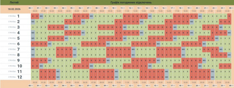 Графік погодинних відключень електрики на 18 лютого 2026 року у Чернівцях. АТ «Чернівціобленерго»