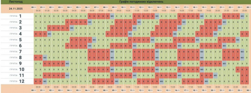 Режим роботи графіків може змінюватися протягом доби залежно від ситуації в енергосистемі України, повідомляли раніше Суспільному в обленерго.