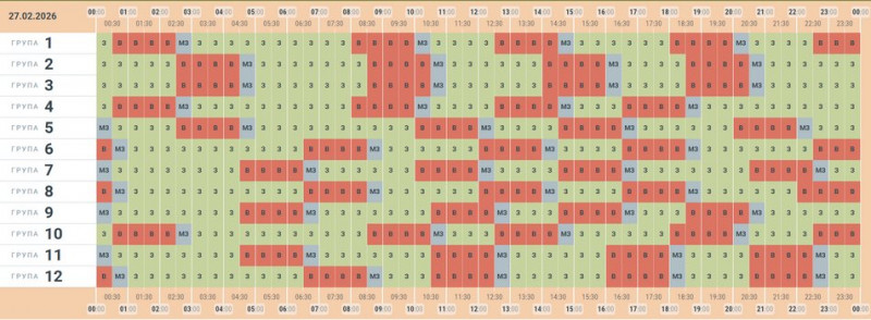Графік погодинних відключень електрики на 27 лютого 2026 року у Чернівцях. АТ «Чернівціобленерго»