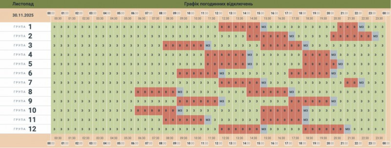 Графік погодинних відключень електрики на 30 листопада 2025 року у Чернівцях. АТ «Чернівціобленерго»