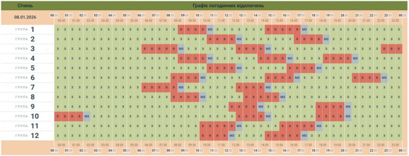 Графік відключення світла на 8 січня 2026 року у Чернівцях та області. АТ «Чернівціобленерго»