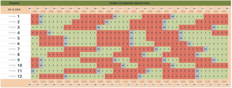 Графік відключення світла на 9 грудня 2025 року у Чернівцях та області. АТ «Чернівціобленерго»