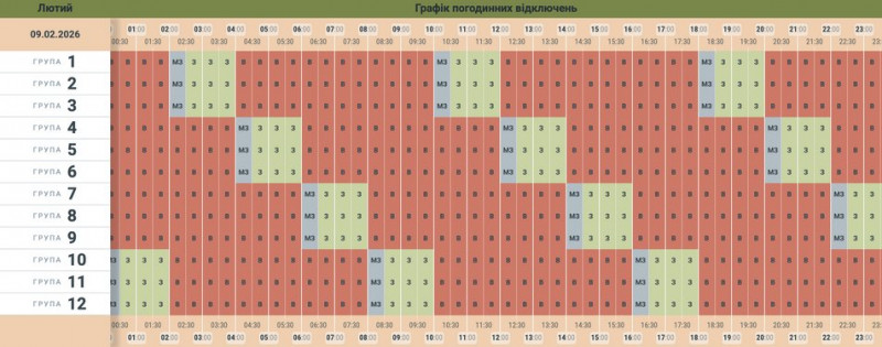 Графік відключень світла на понеділок, 9 лютого. Чернівціобленерго