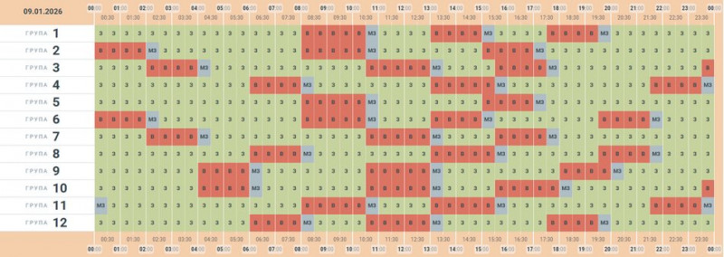 Графік відключення світла на 9 січня 2026 року. АТ «Чернівціобленерго»
