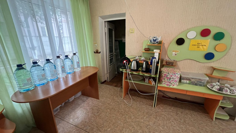 Запаси питної води та чайники в одному з дитячих садочків Прилук. Суспільне Чернігів
