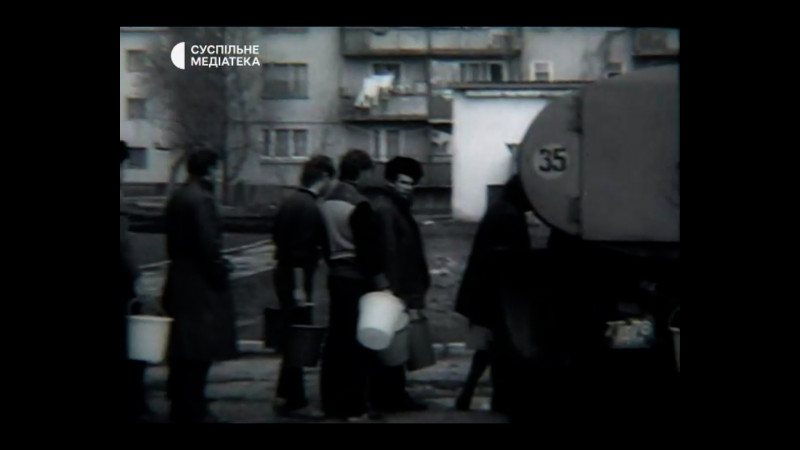 На фото чорно-біла хроніка 1980-их років: черга за продуктами Суспільне Медіатека