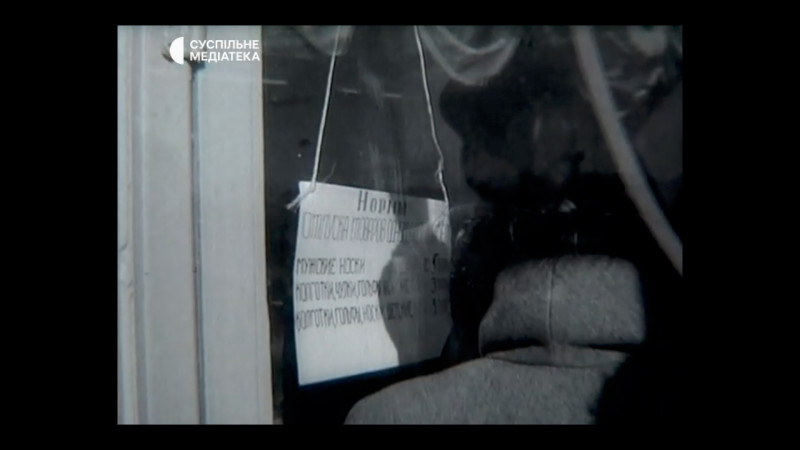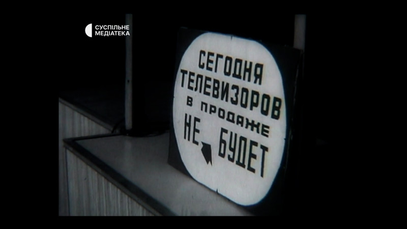 На фото чорно-біла хроніка 1980-их років: табличка «Сьогодні телевізорів в продажі не буде» Суспільне Медіатека