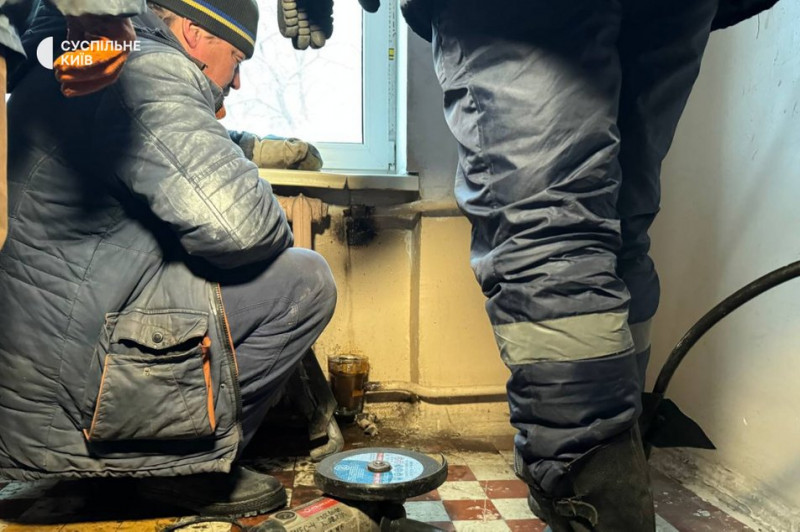 Співробітники Укрзалізниці працюють над відновленням теплопостачання в одному з будинків Києва. Суспільне Новини/Анна Самара
