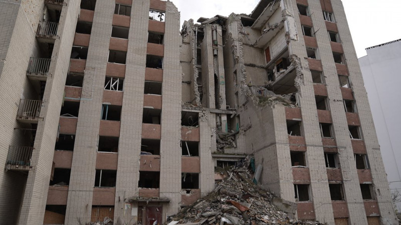 Гуртожиток у Чернігові у мікрорайоні ЗАЗ, який 13 березня 2022 року розбомбила російська авіація. Суспільне Чернігів