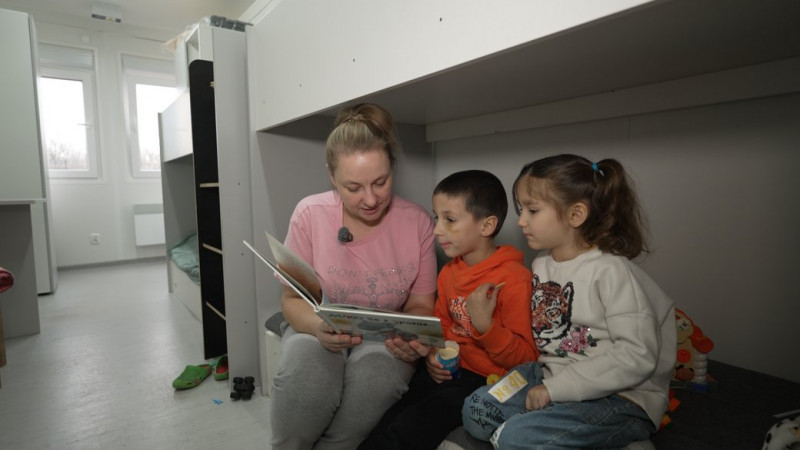 "Діти тут заспокоїлися. Якщо вночі там вони прокидалися від якогось шуму звичайного, бо вже думають, що щось летить, тут хоча б заспокоїлися. Ну, і запропонували тут психолога, щоб попрацював із дітьми. Оформлюється садочок, підготовлюють документи, зробила собі статус ВПО. Поки що тут, у модульному будиночку. А там, звісно, планую знайти роботу, покращити якось рівень життя. Бо тут добре, але ж, розумієте, дітям треба своя кімната".