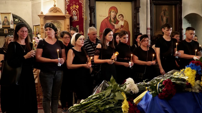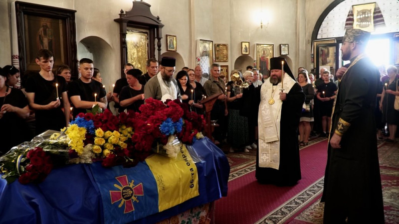 Прощання з командиром бригади окремого механізованого батальйону Віталієм Солодким. ФОТО: Суспільне Чернігів