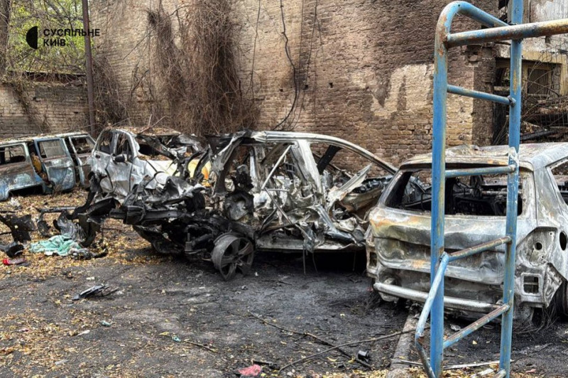 Окрім будівель, також постраждало кілька автівок — у них вибиті вікна та пошкоджені кузовні частини. Є і згорілі авто.