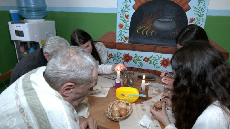 "Цікаво робити. Орнаменти можна різні. Ми беремо рука в руку і працюємо. Я це роблю не вперше. Вдома часто робила. Але так уперше", — сказала мешканка центру Олександра Григорівна.
