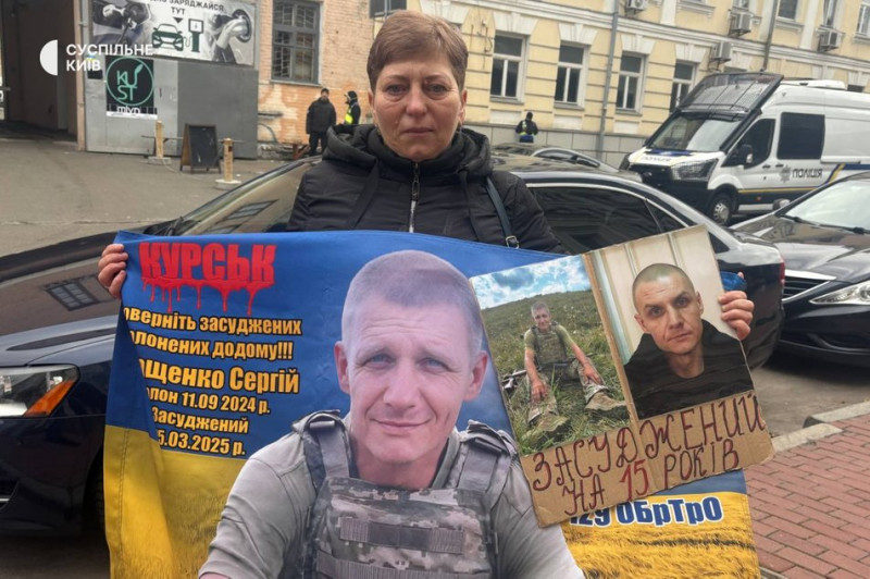 У Києві під Координаційним штабом з питань поводження з військовополоненими зібралися рідні українських військовослужбовців, яких Росія незаконно засудила після полону. Учасники акції вимагали від української влади активніших дій для пошуку та звільнення засуджених полонених.
