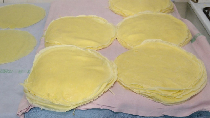 “Сьогодні я кинула 20 штук яєць. Трошки цукру, солі, ванільки. Борошно, олія. І сім літрів молока. Змащуємо салом. Потім наливаємо рідину, яку підготували, і підсмажуємо. Щоб хлопцям попало, щоб наїдалися. Щоб в них сили були нас захищати. Ми їм дуже дякуємо за все”, — сказала Тетяна Черната.