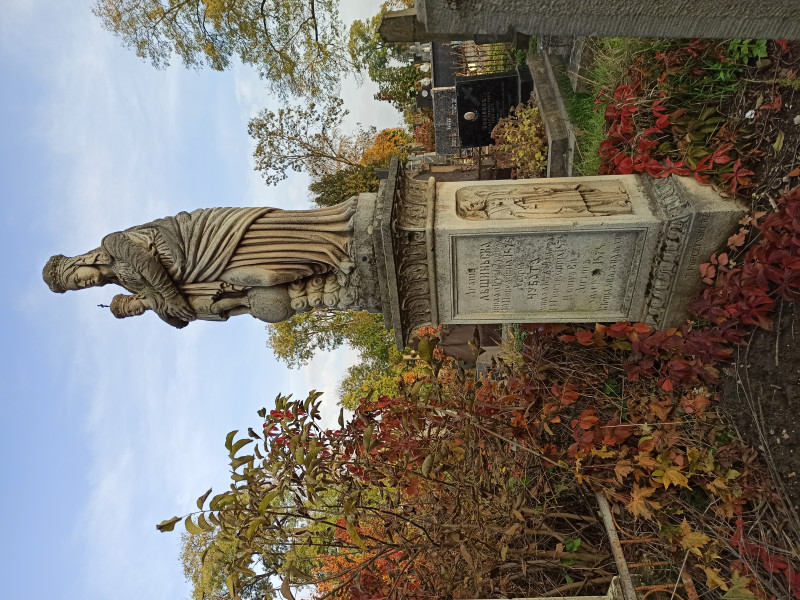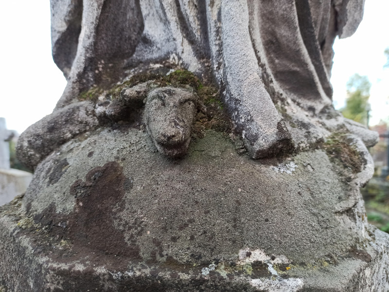 "Це називалося патрональною скульптурою — коли на могилі встановлювали фігуру в честь святого, ім'я якого носили померлі. Зазвичай в Україні всі були хрещені, тож і імена давали з церковного календаря. Наприклад, на який день припав день народження, то відповідно до церковного календаря і обирали ім'я. Ну, або за бажанням батьків ще. Святий, в честь якого людину назвали, був її патроном, тож і на могилі могли поставити саме його скульптуру. Якщо ж поховання було на кількох людей, то центральною фігурою міг бути святий-покровитель голови роду або того, хто помер раніше, а по боках постаменту — інші, в честь кого названі члени сім'ї чи родини".