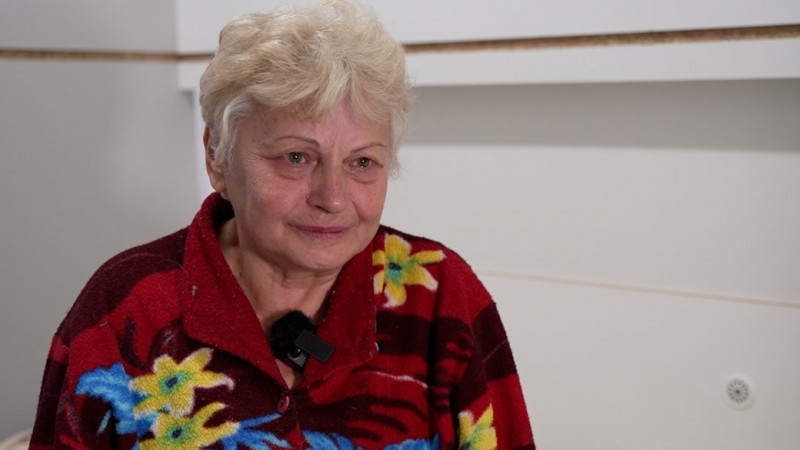 "З 1973 року я там жила. Ну а війна почалася, у підвалі жили два місяці. Тут я ще доглядаю за братом мого чоловіка. В нього немає нікого, мені доводиться за ним доглядати. От з ним я сюди приїхала. Так зустріли добре. Одразу все дали. І постільну білизну, і посуд, їжу. Заходь та живи, тут же всі умови: опалення, гаряча вода, душ, машина пральна, все є".