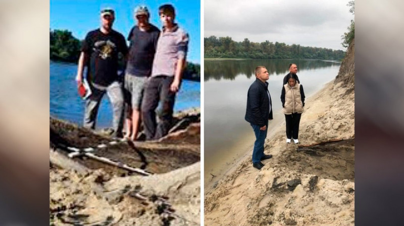 Археологи під час знахідки човна та після того, як викрали носову частину. ФОТО: Facebook Центр археології та стародавньої історії Північного Лівобережжя