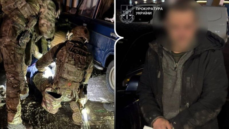 Ліворуч — фото під час затримання, праворуч — підозрюваний. Прокуратура Чернівецької області
