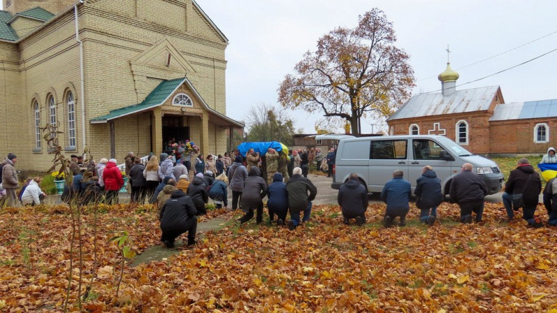 Люди на колінах зустрічають захисника Івана Войтка. Бобровицька територіальна громада