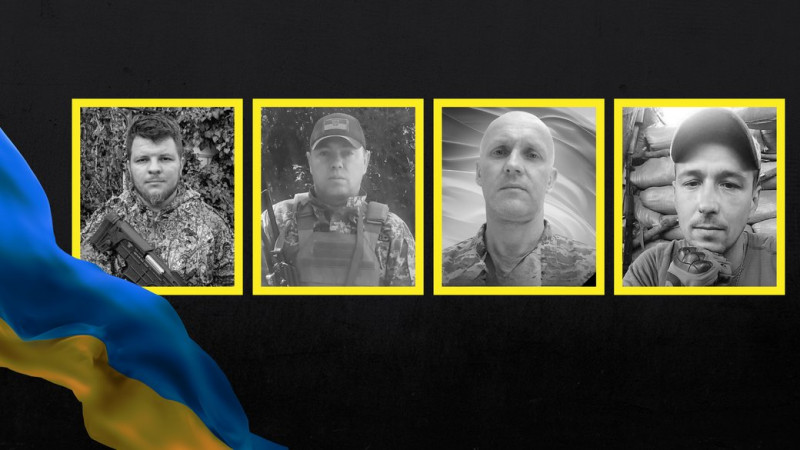Захисники, з якими попрощалися 16 квітня 2026 року на Чернігівщині: Олександр Сердюк, Микола Вовк, Вадим Смирнов, Олексій Хвост. Михайло-Коцюбинська територіальна громада / Бахмацька міська рада / Facebook-сторінка Дарини Якущенко / Ріпкинська селищна рада