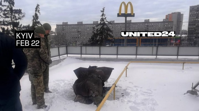 У Києві після нещодавнього російського обстрілу на даху ресторану McDonald’s знайшли фрагмент балістичної ракети "Іскандер".